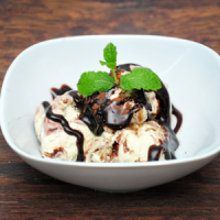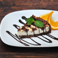 tartă de brânză cu ciocolată, sos de ciocolată