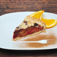 tartă de prune, smântână, zahăr pudră