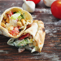 pizzatészta, saláta, csirkemell, sajt, paradicsom, uborka, majonézes szósz