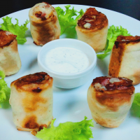 pizzatészta, saláta, bacon, tükörtojás, sajt, paradicsom, majonézes szósz